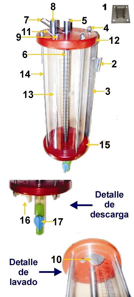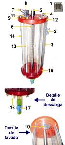 Diametro de conexión entre recipiente y deposito de impurezas, de 70 mm