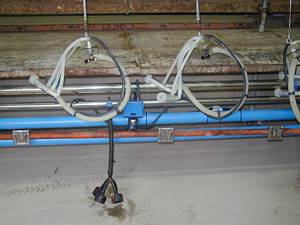 Entrada de leche desde el equipo de ordeño y salida a conduccion